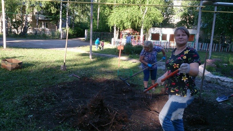 Наш детский сад «Колобок» - красивый, зелёный островок детства, где вместе с птичьими трелями слышны весёлые голоса малышей. Заботливый персонал высаживает на клумбы яркие цветы, в маленьком огородике нашли своё место овощи. Деревья и кустарники обрамляют всю территорию детского сада. Но настаёт пора, когда зелёной зоны становится слишком много, излишняя тень на участке уже не радует. И тогда мы просим помощи наших надёжных друзей – родителей! В пятницу, 15 июня, на участке раздавались звонкие голоса триммера и бензопилы. Это родители пришли на помощь нашему детскому саду. Была проделана большая работа по удалению кустарников, отслуживших свой век рябин, обрезке крупных стволов клёна, засоряющих участок сухими ветками. Теперь наша территория, наше маленькое «государство» - детский сад, стало опрятнее, чище и наряднее! Ребятня, вышедшая на прогулку в понедельник, сразу оценило изменения – «Как у нас красиво и чисто!» Большое спасибо за это нашим родителям – Коваленко Андрею Михайловичу, Войтешонок Анатолию Евгеньевичу, семье Песковых – Олегу Евгеньевичу, Никите Спотарь, Александру Бокову, Мовлямову Юрию Реджеловичу, Андреянову Дмитрию Валерьевичу, Афанасьеву Никите Игоревичу, Новикову Николаю Николаевичу, Кротовым Александру Арьевичу и Антону Александровичу, Никиточкиной Юлии Юрьевне.